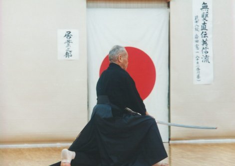 [意義]正面に対座する相手が、我が右足に薙ぎつけてくるのを受け止め、 (受け払う心持)相手の退かんとするを上段より斬り下ろしてたおす業前である。